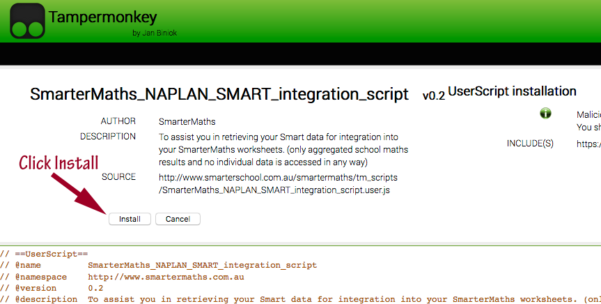 STEP 2: Install the SmarterMaths SMART data integration script