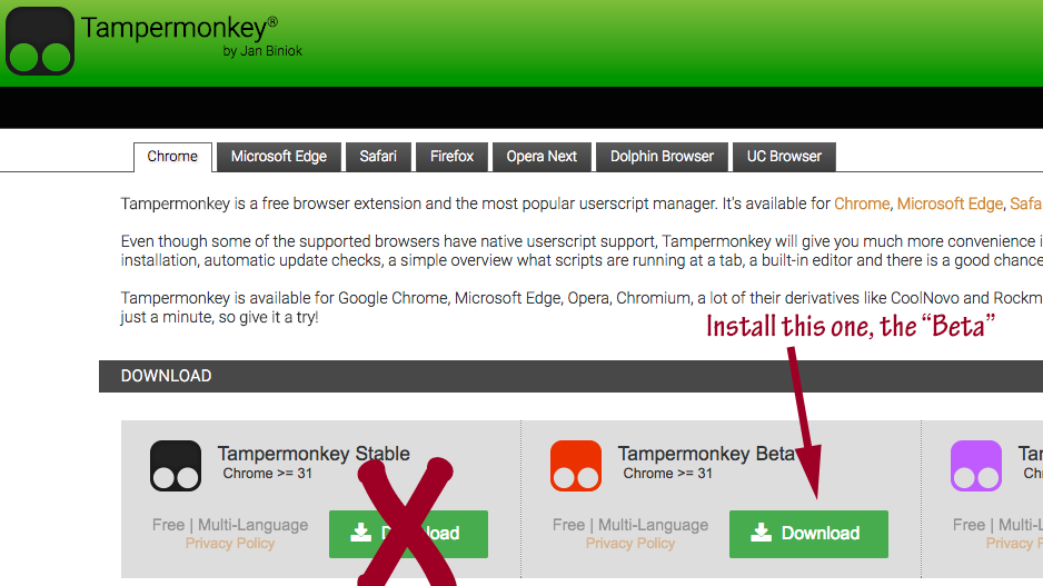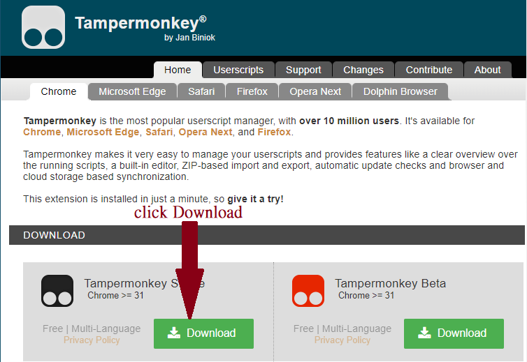 - In your browser, go to https://tampermonkey.net/ and click on download.