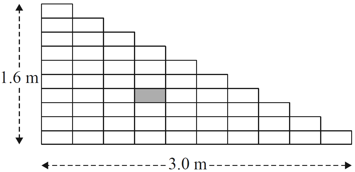 The staircase is 1.6 m high and 3.0 m deep.