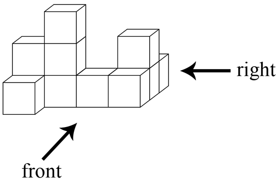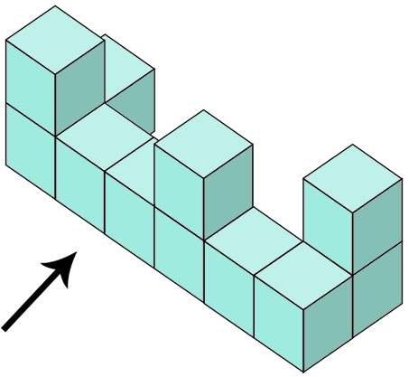 May looked at a stack of cubes from the direction of the arrow, shown in the diagram below.