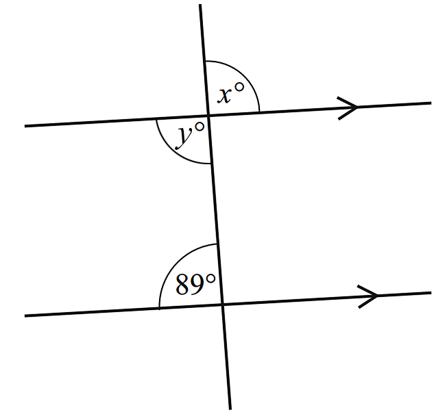 - One pair of vertically opposite angles using the label "×" to identify the angles. (1 mark)