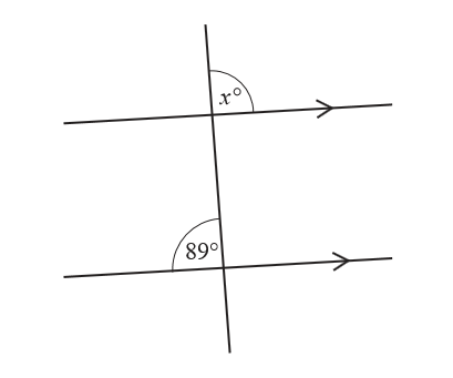 Determine, giving reasons, if the two lines cut by the transversal in the diagram below are parallel. (1 mark)