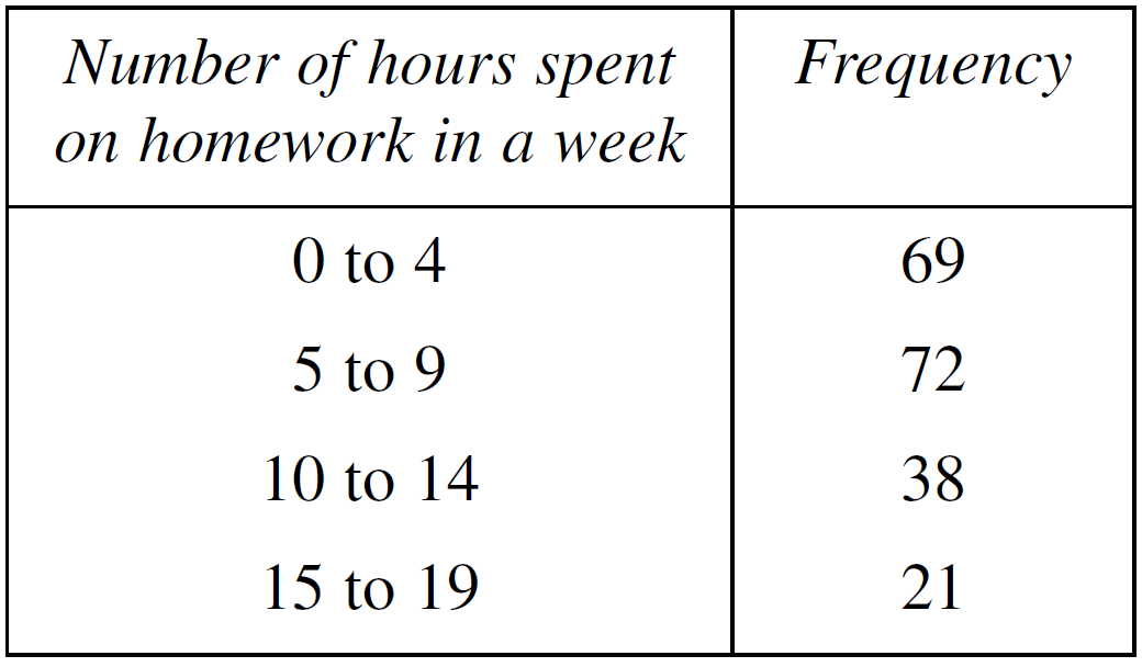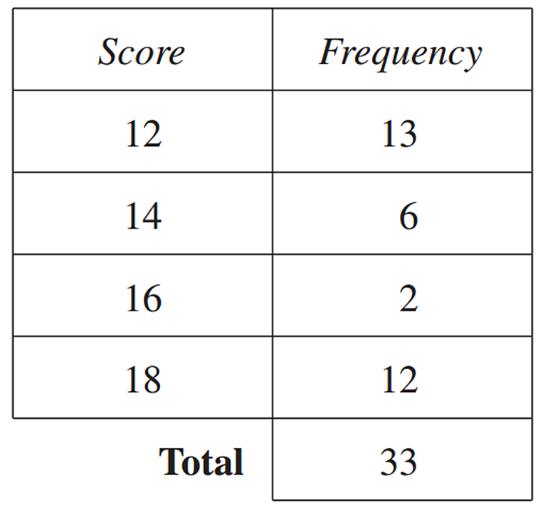 The results are shown in the frequency table.