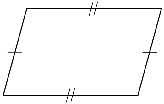 Special Properties, SMB-010 MC Which of these are always equal in length? the diagonals of a rhombus the diagonals of a parallelogram the opposite sides of a parallelogram the opposite sides of a trapezium Show Answers Only `C` Show Worked Solution `text{Consider each option:}` `A:\ \text{rhombus diagonals are perpendicular but not always equal}` `B:\ \text{parallelogram diagonals not always equal (see below)}` `C:\ \text{always true (see above)}` `D:\ \text{at least 1 pair of opposite sides of a trapezium are not equal}` \(\Rightarrow C\)