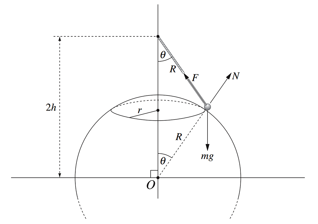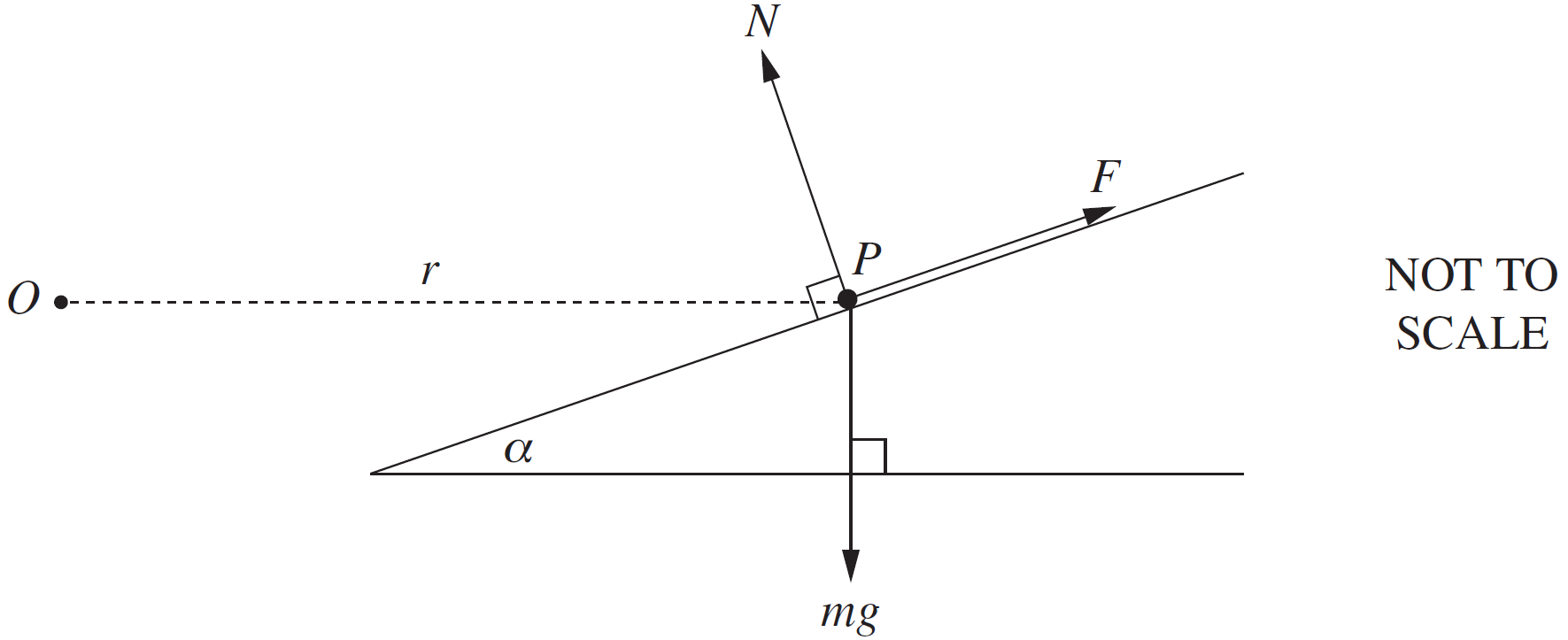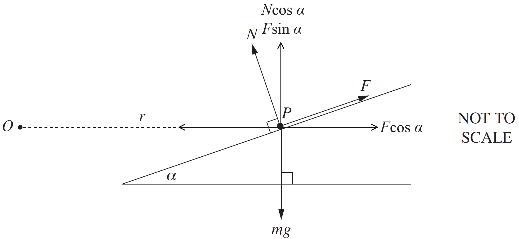 - `N = mg cos theta - m r omega^2 sin theta.` (3 marks)