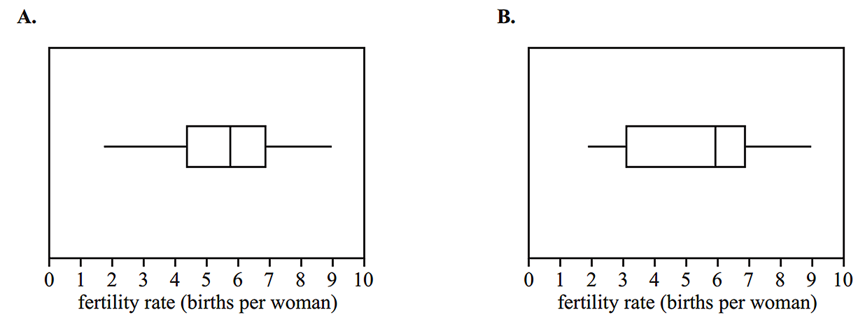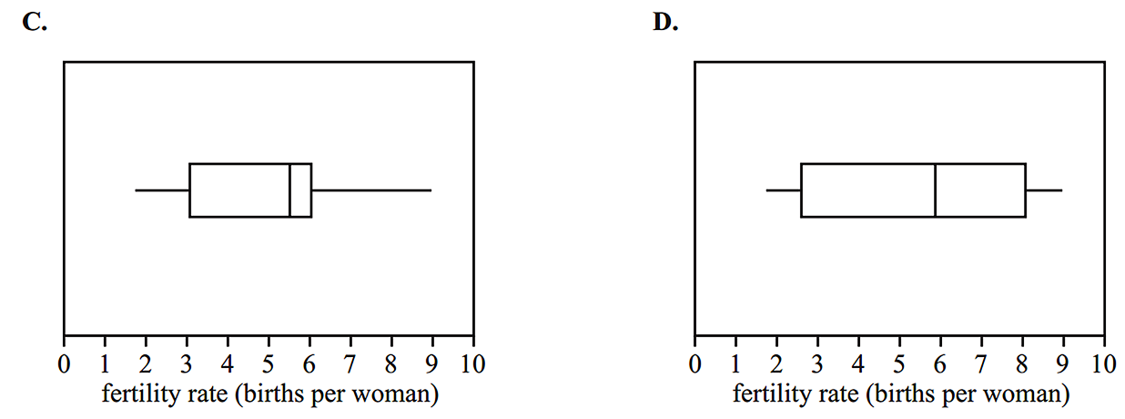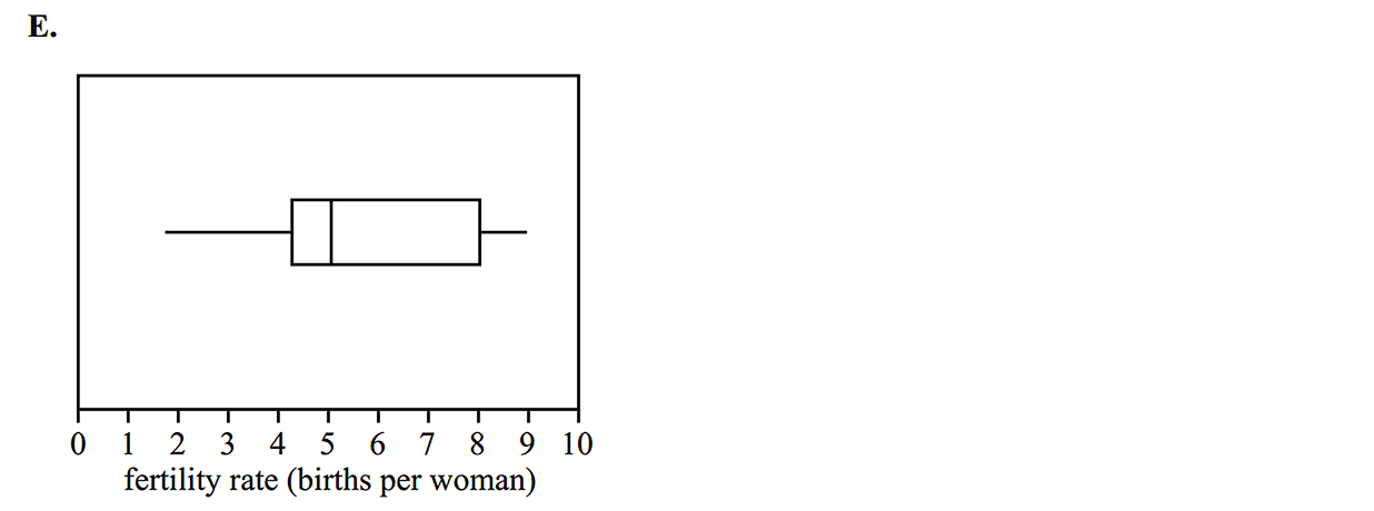 Which one of the boxplots below could best be used to represent the same fertility rate data as displayed in the percentage histogram?