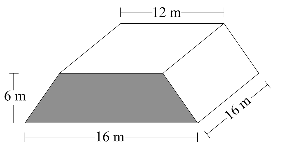 An ancient building has the shape of a trapezoidal prism.
