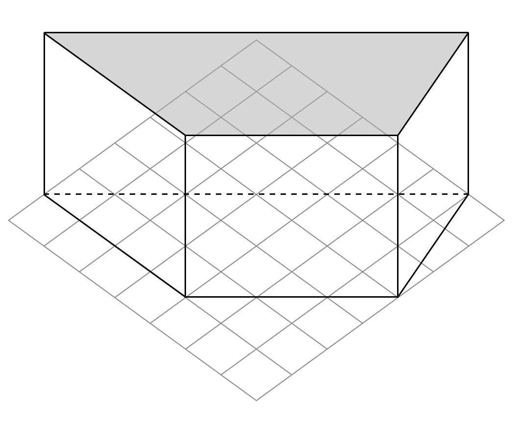 \(\text{The bottom shape is a trapezoidal prism (not a trapezium).}\)