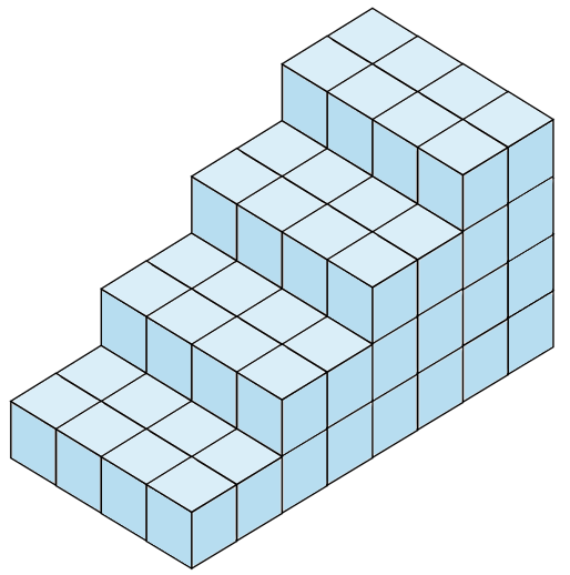If each block is 1 cubic centimetre, what is the volume of the model staircase? (2 marks)