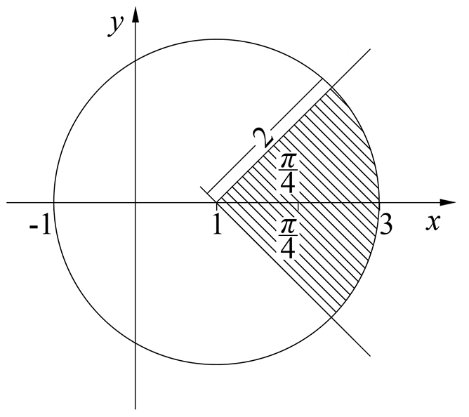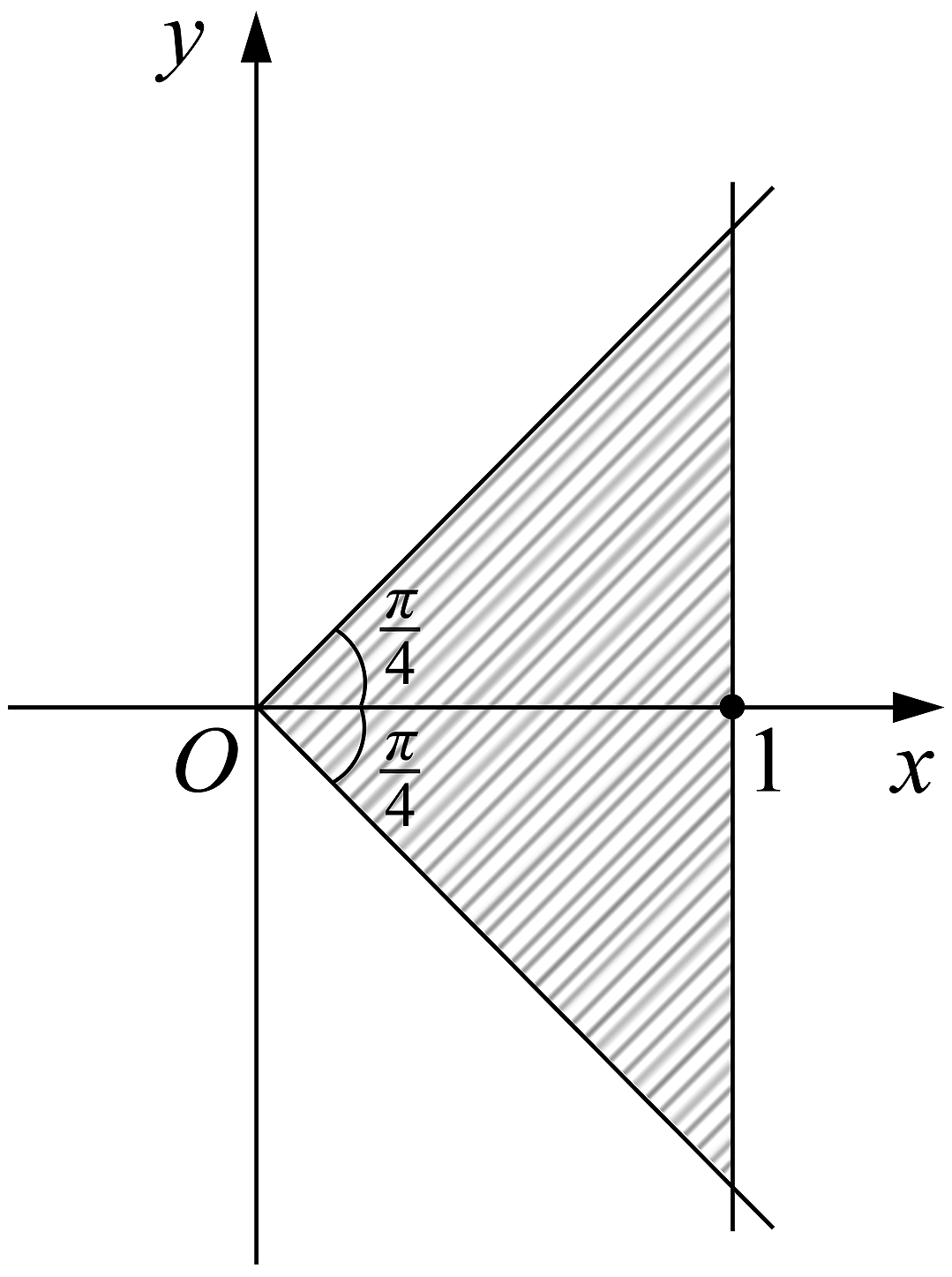 Sketch the region in the Argand diagram where `|\ z\ | ≤ |\ z − 2\ |` and `−pi/4 ≤ text(arg)\ z ≤ pi/4`. (3 marks)