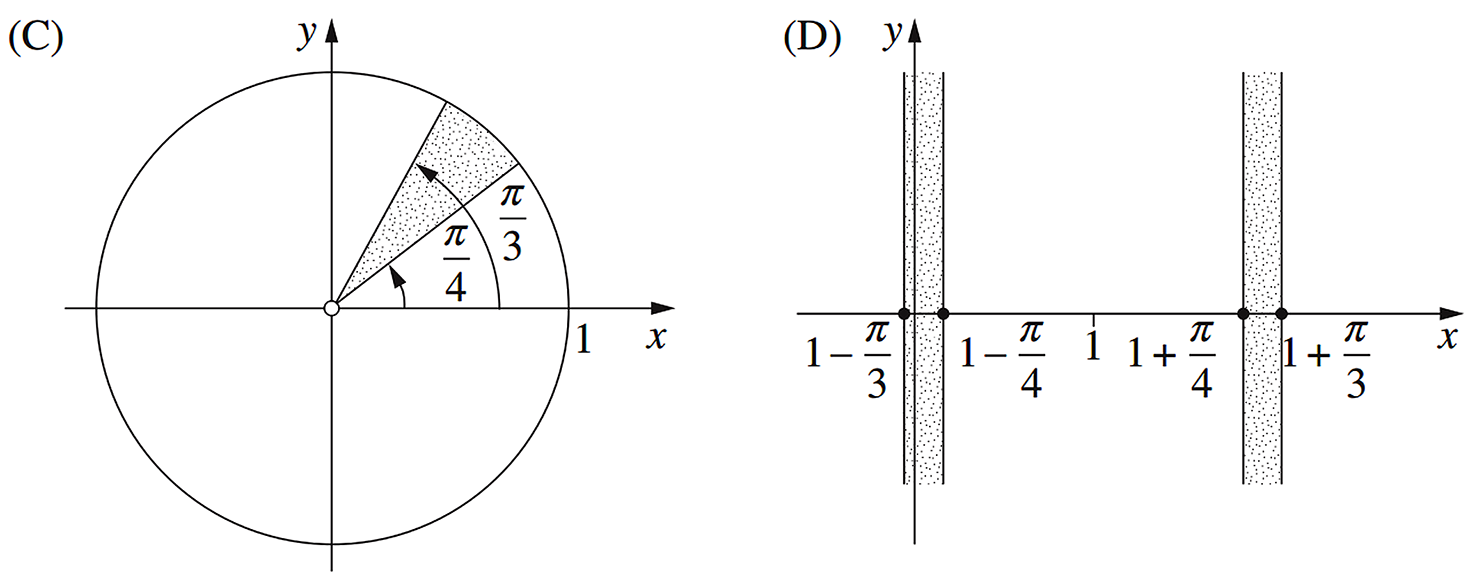 The complex numbers \(w\) and \(z\) both have modulus 1, and \(\dfrac{\pi}{2} \lt \text{Arg} \Big{(}\dfrac{z}{w}\Big{)} \lt \pi\), where \(\text{Arg}\) denotes the principal argument.