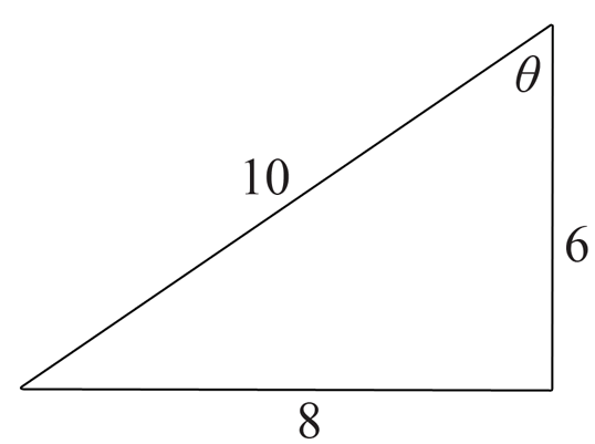 | `=>cos theta=6/10\ \ text(and)\ \ sin theta=8/10` | |