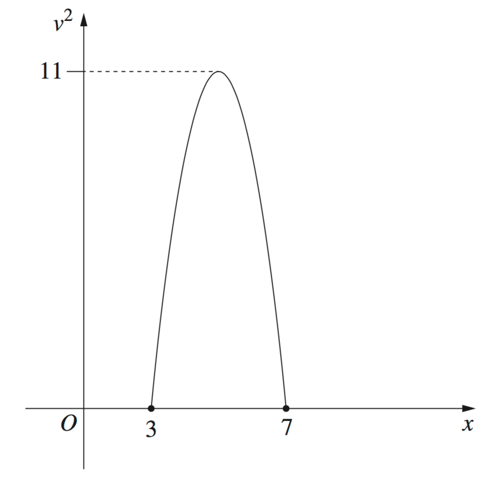 Find an equation for the displacement, `x`, of the particle in terms of `t`. (3 marks)