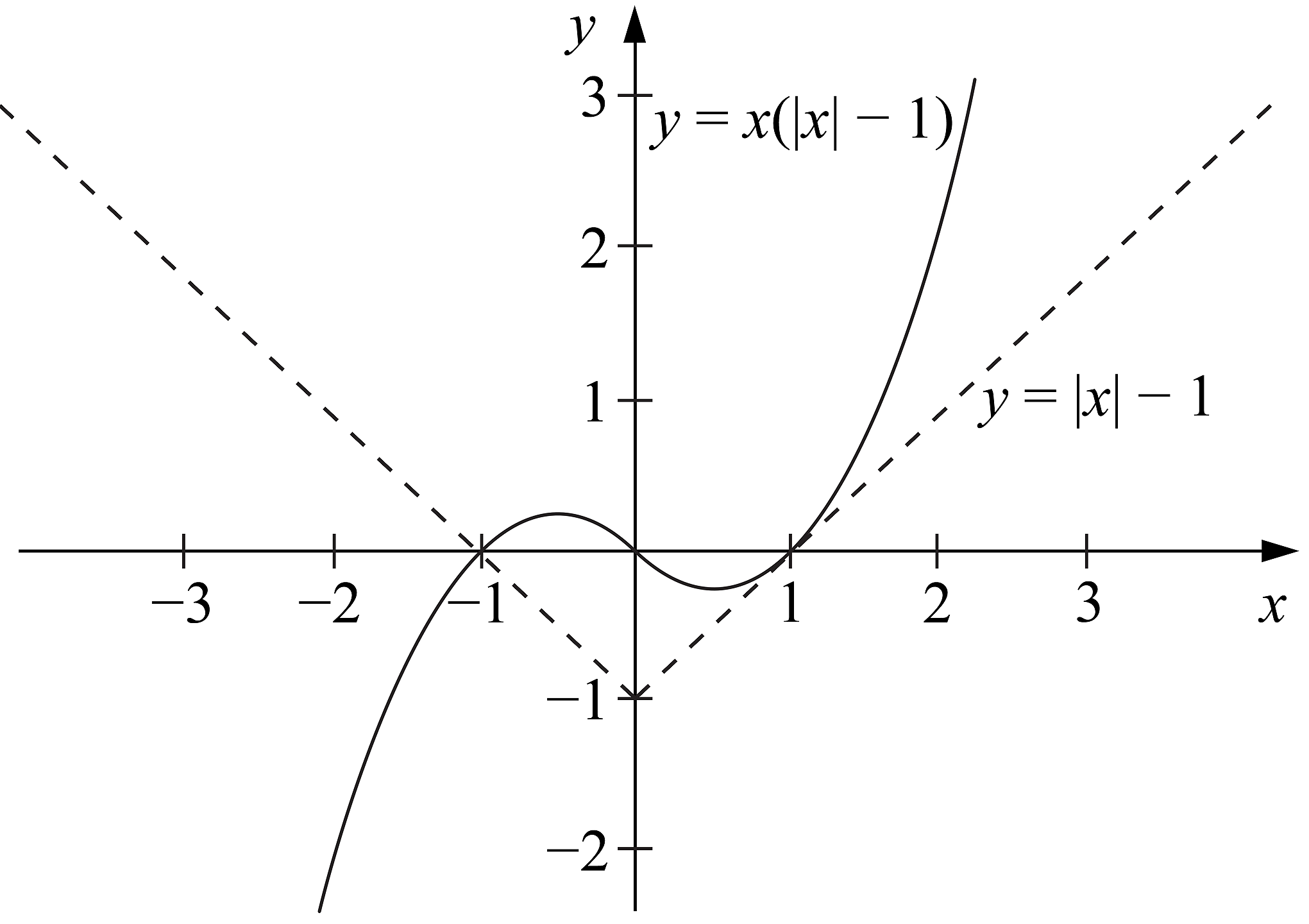 The diagram shows the graph of \(y = f(x)\). The line \(y = x\) is an asymptote.