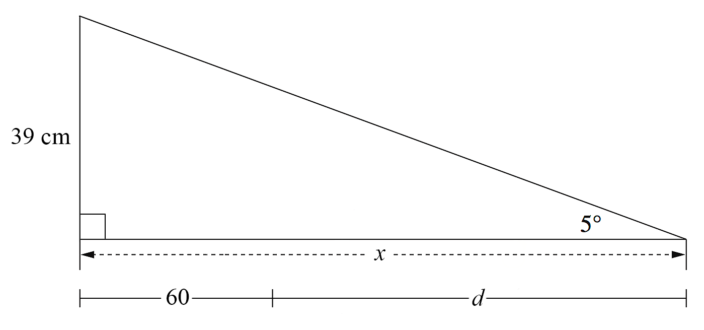 `text(Let the horizontal part of the ramp) = x\ text(cm)`