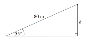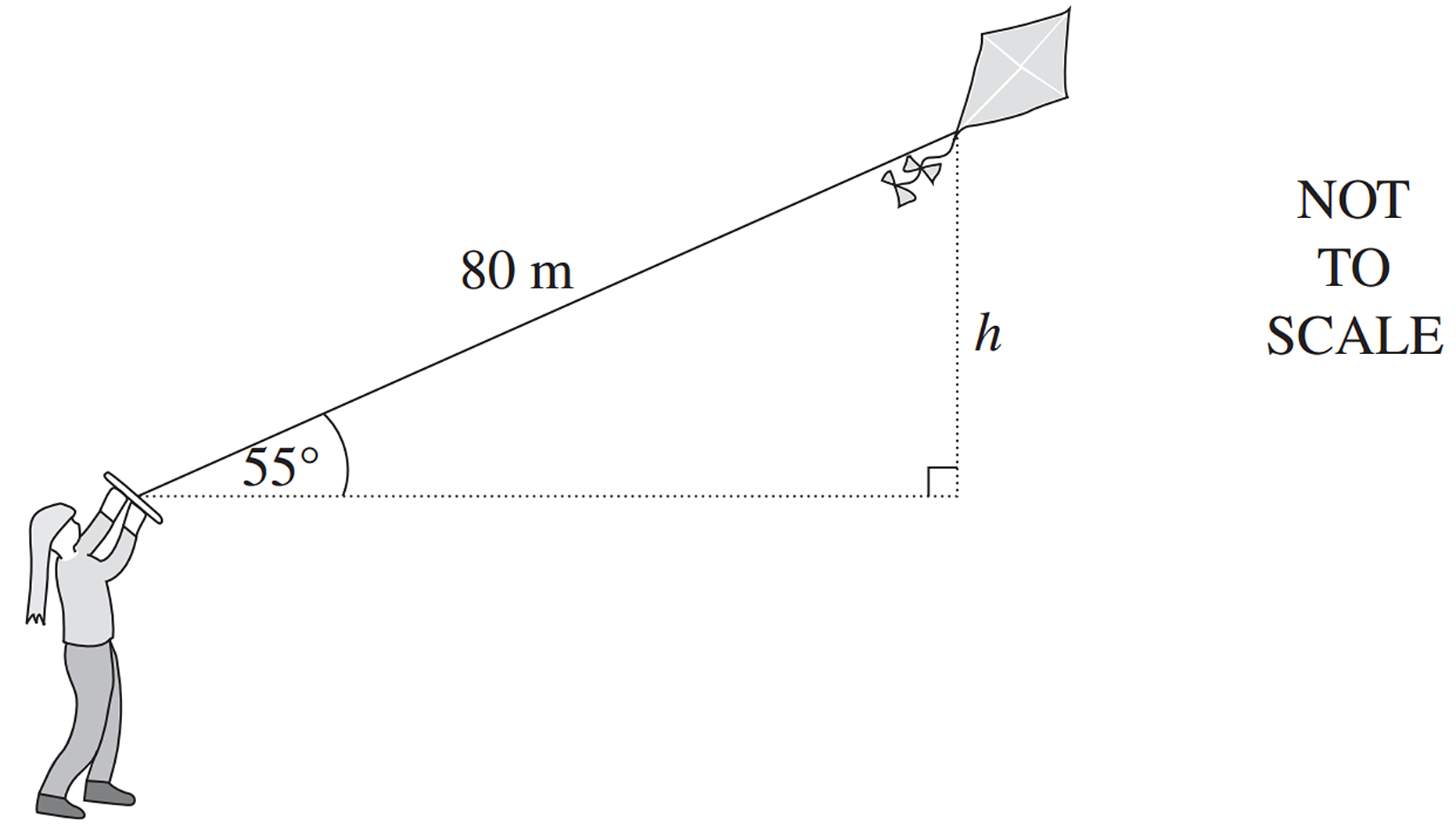 Danni is flying a kite that is attached to a string of length 80 metres. The string makes an angle of 55° with the horizontal.
