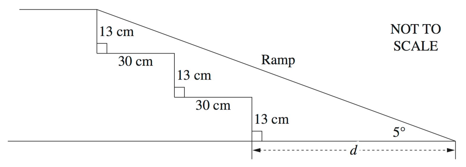 A disability ramp is to be constructed to replace steps, as shown in the diagram.