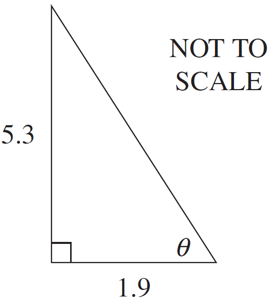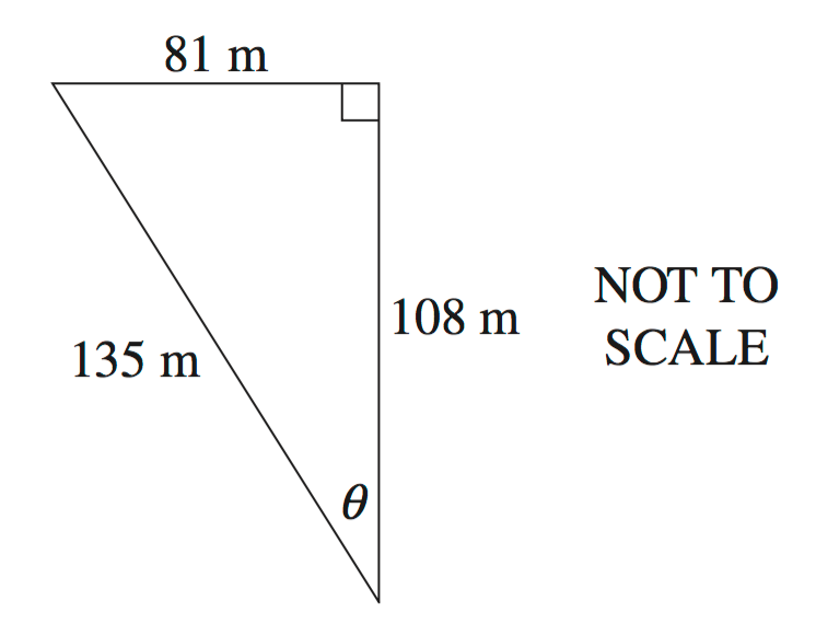 Calculate the size of angle `theta`, correct to the nearest minute. (3 marks)