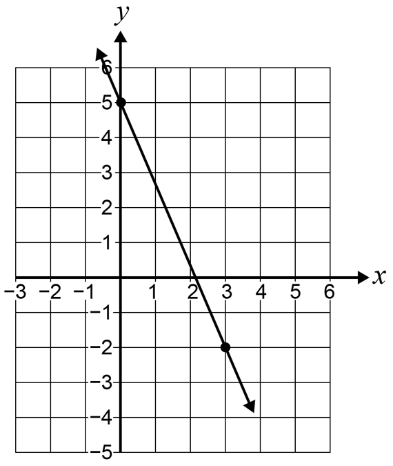 `text(Line passes through)\ (0, 5)\ \text(and)\ (3,-2):`