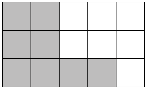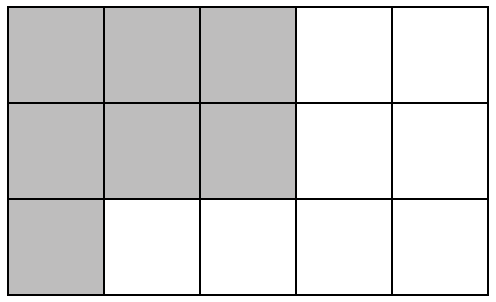 Number and Algebra, NAP-H2-17 Phil painted squares grey in the grids pictured below. Which grid has `1/3` of its squares painted grey? Show Answers Only Show Worked Solution `1/3\ \ text(of the grid is 5 squares.)`
