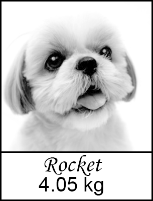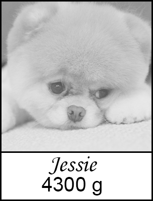 Measurement, NAP-C2-23 Four puppies had their mass measured in their first check-up with the vet. Which puppy has the greatest mass? Show Answers Only Show Worked Solution `text(Converting all units to grams to compare:)` `text(Max: 4.4 kg = 4400 grams)` `text(Jessie: 4300 grams)` `text(Rocket: 4.05 kg = 4050 grams)` `text(Barney: 4080 grams)` `:.\ text(The puppy with the greatest mass is)`