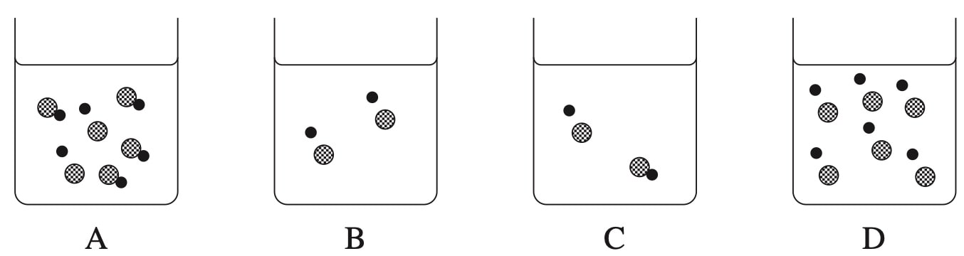 \hline \text{Initial} & 0.1 \times \dfrac{500\ \text{mL}}{1000\ \text{mL}} = 0.05 & 0.1 \times \dfrac{500\ \text{mL}}{1000\ \text{mL}} = 0.05 & 0 \\