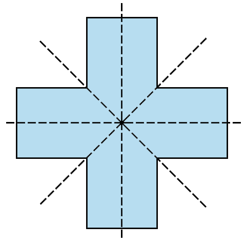 Gabby adds a sixth point, `F` so that the arrangement of points has one line of symmetry.