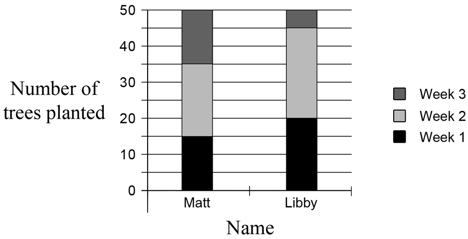 \(\therefore\ \text{Libby planted 5 more trees than Matt in Week 2.}\)