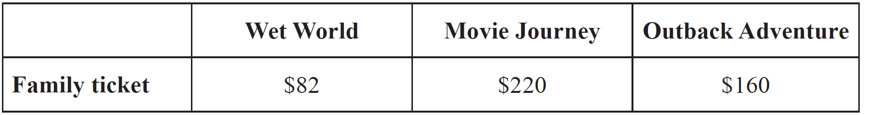 - What is the total cost for the family if it visits all three theme parks? (1 mark)