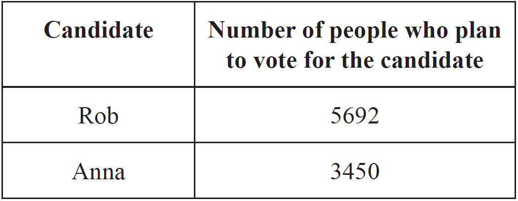Two politicians, Rob and Anna, are the only candidates for a forthcoming election. At the beginning of the election campaign, people were asked for whom they planned to vote. The numbers were as follows.