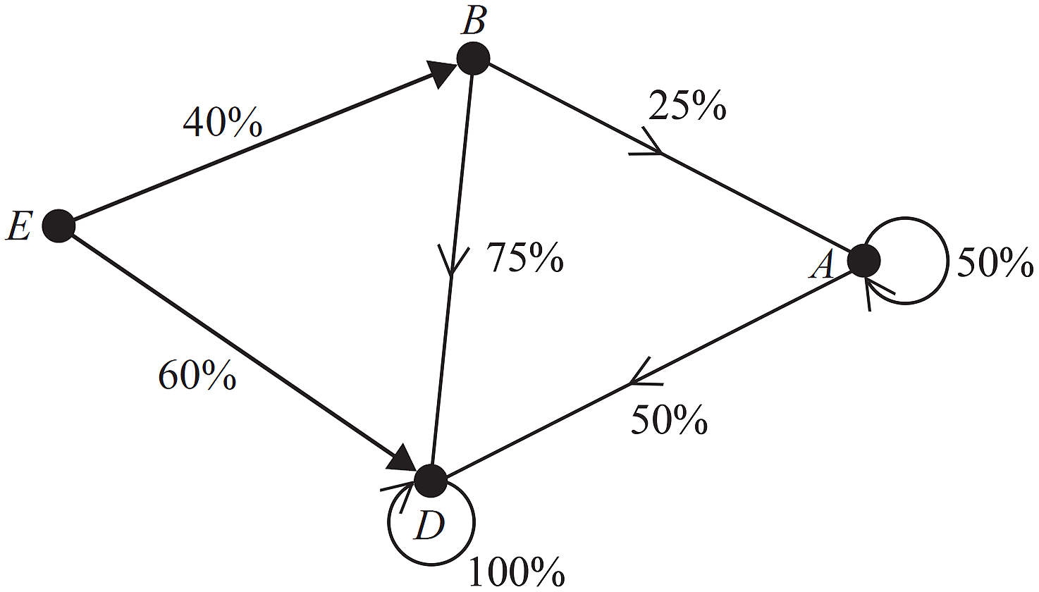 Researchers suggest that the following transition matrix can be used to predict the number of mutton birds nesting at each of the four sites in subsequent years. An equivalent transition diagram is also given.