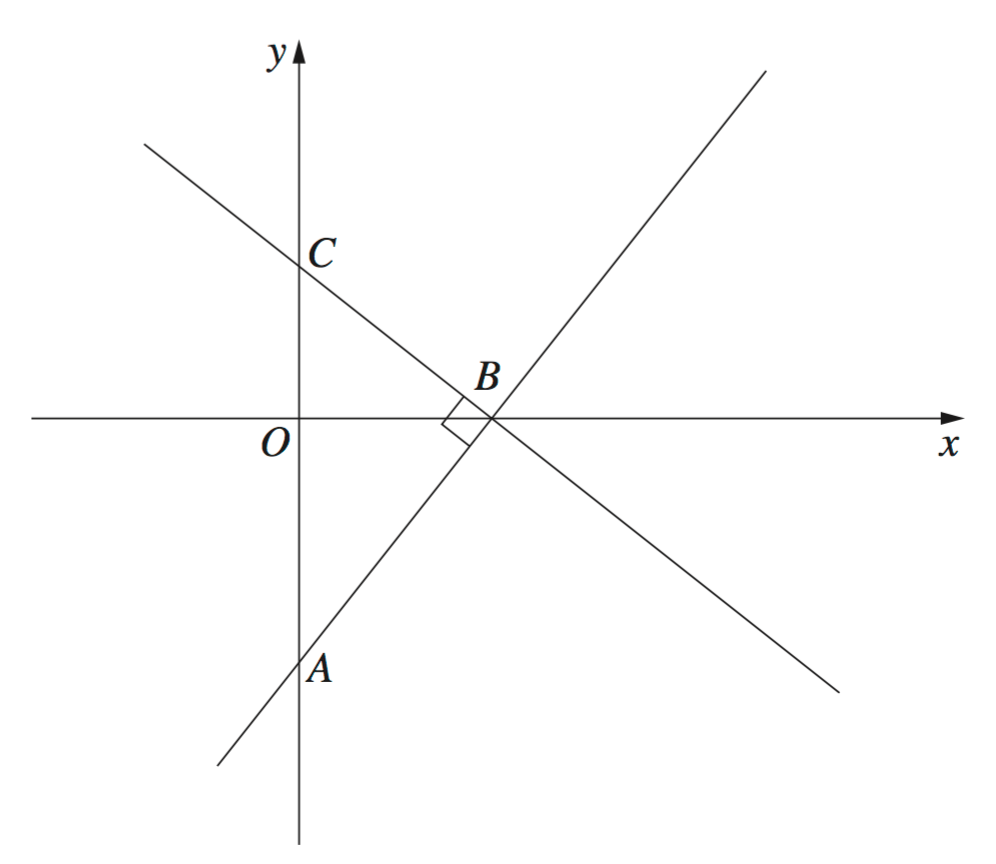 In the diagram, the points `A` and `C` lie on the `y`-axis and the point `B` lies on the `x`-axis. The line `AB` has equation `y = sqrt3x-3`. The line `BC` is perpendicular to `AB`.