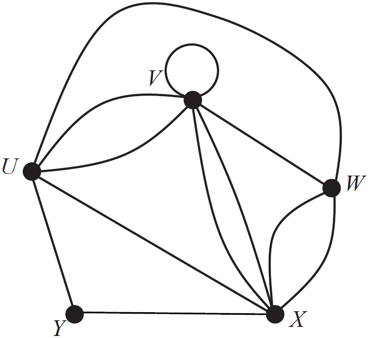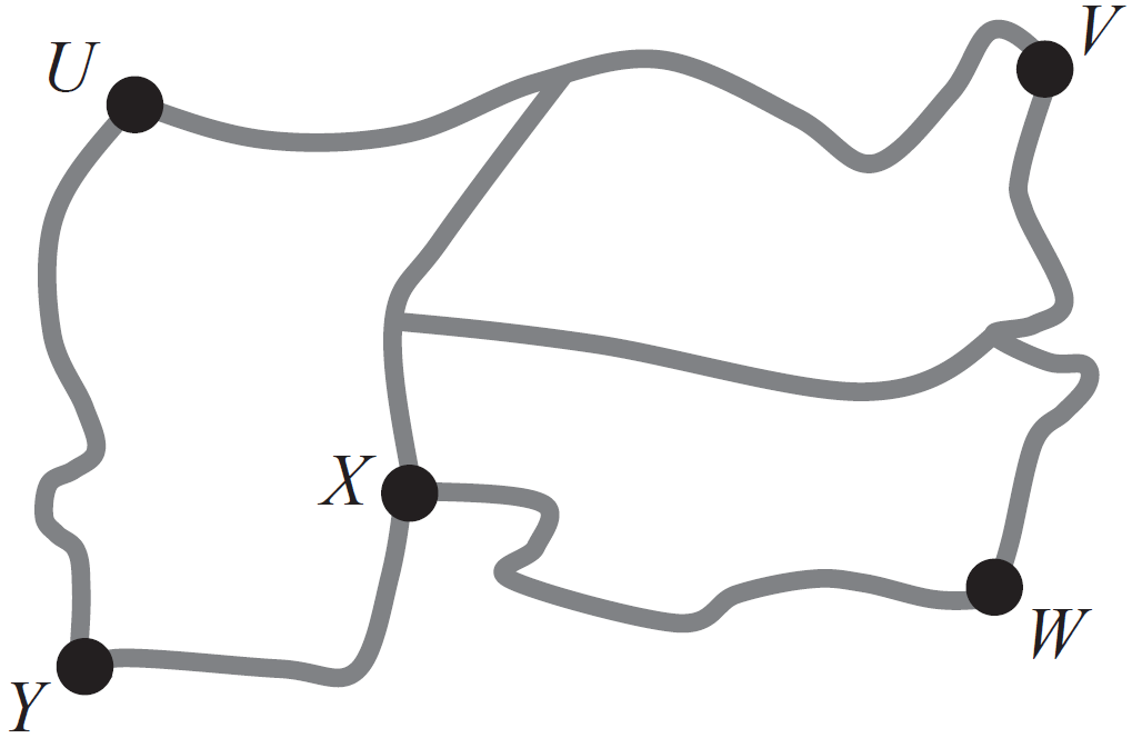 The map below shows all road connections between five towns, `U`, `V`, `W`, `X` and `Y`.