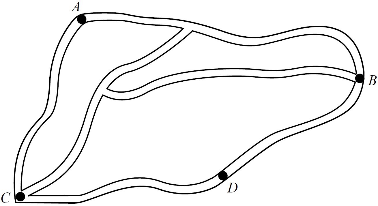 The following is a map of the roads that link the four towns, `A`, `B`, `C` and `D`.