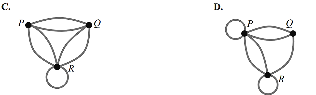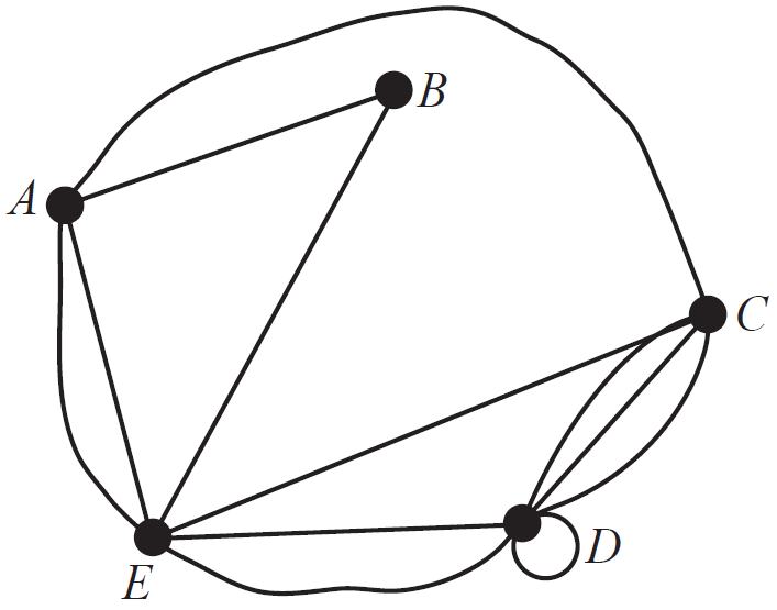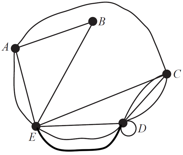 - ii. With reference to the network diagram, explain why a motorist at `A` could not drive each of these routes once only and arrive back at `A`. (1 mark)