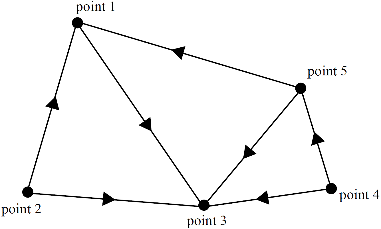 The directed graph below shows the directions of the flow of water through these pipes between these points.