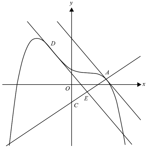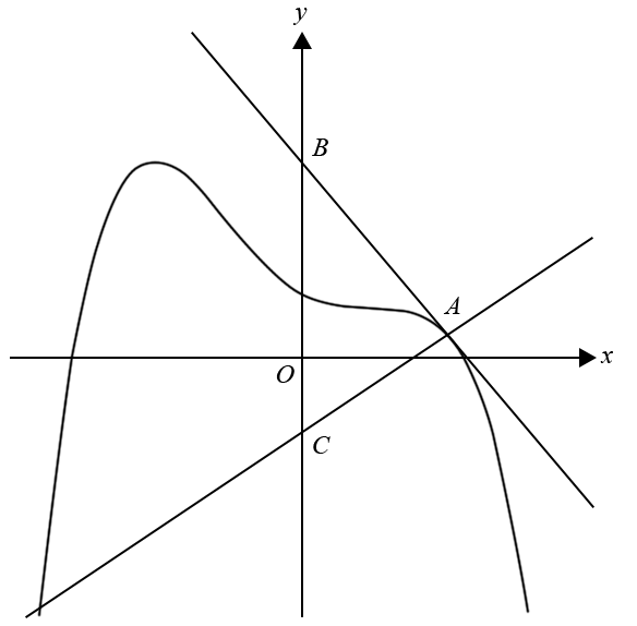 - Points `B` and `C` are the positive `x`-intercept and `y`-intercept of the graph `g`, respectively, as shown in the diagram above. The tangent to the graph of `g` at the point `A` is parallel to the line segment `BC.`