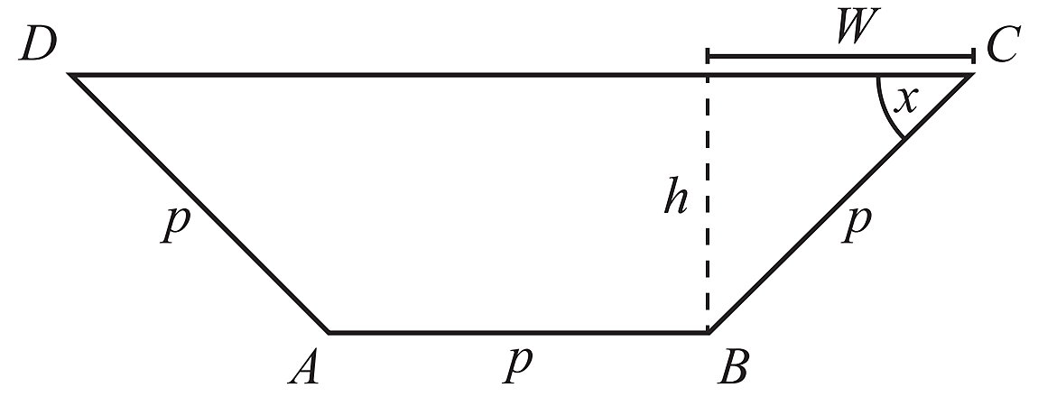 Find the value of \(x\) which maximises the area of the trapezium below.