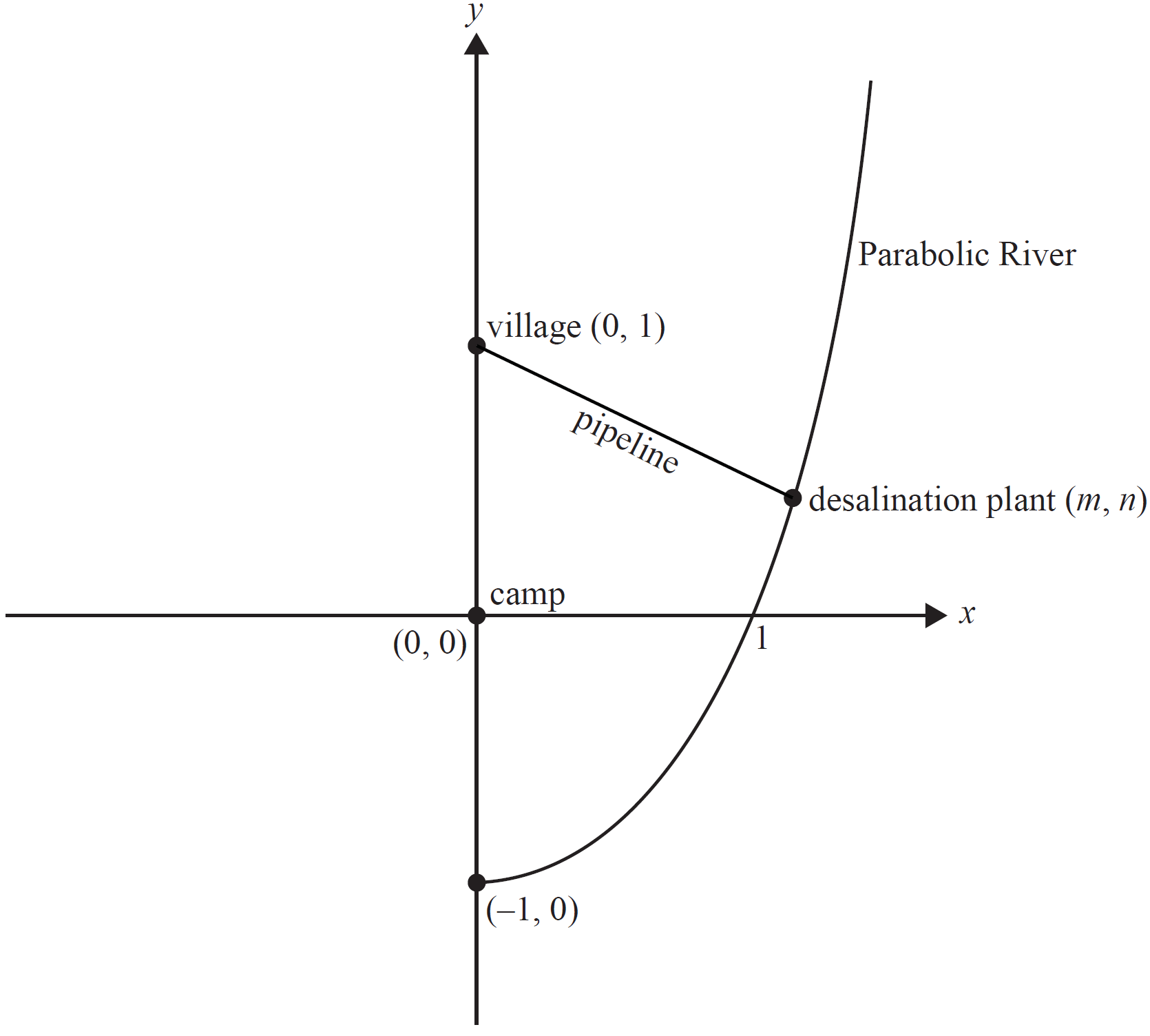 - Find this minimum distance. Give your answer in metres, correct to one decimal place. (2 marks)