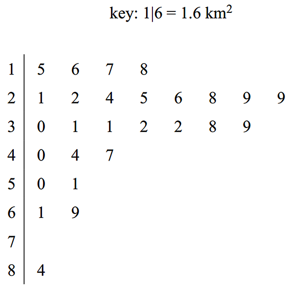 Which one of the following statements relating to the data in the ordered stem plot is not true?