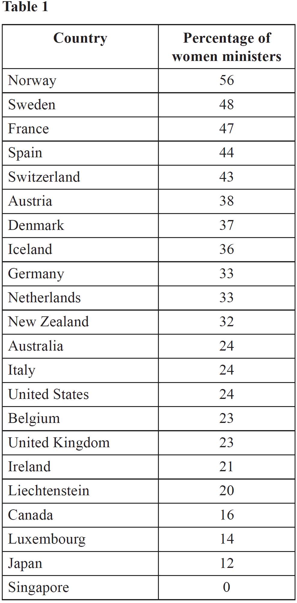 Table 1 shows the percentage of women ministers in the parliaments of 22 countries in 2008. --- 1 WORK AREA LINES (style=lined) --- --- 5 WORK AREA LINES (style=lined) --- The ordered stemplot below displays the distribution of the percentage of women ministers in parliament for 21 of these countries. The value of Canada is missing. --- 1 WORK AREA LINES (style=lined) --- --- 1 WORK AREA LINES (style=lined) ---