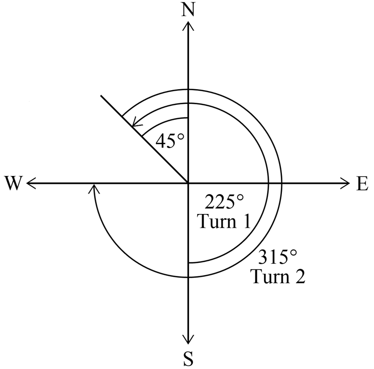 Charles is facing south. He then turns 225° anticlockwise.