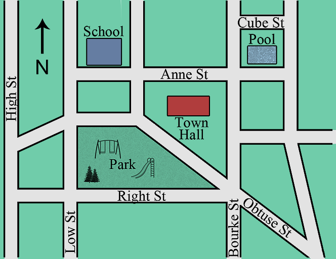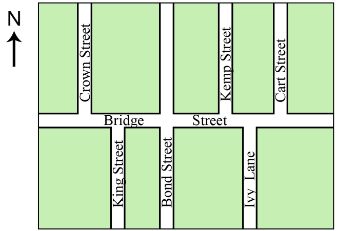 The map is drawn to scale but no scale is given.