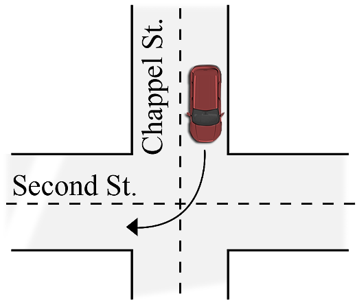 How many degrees did Blair turn on his final right turn?