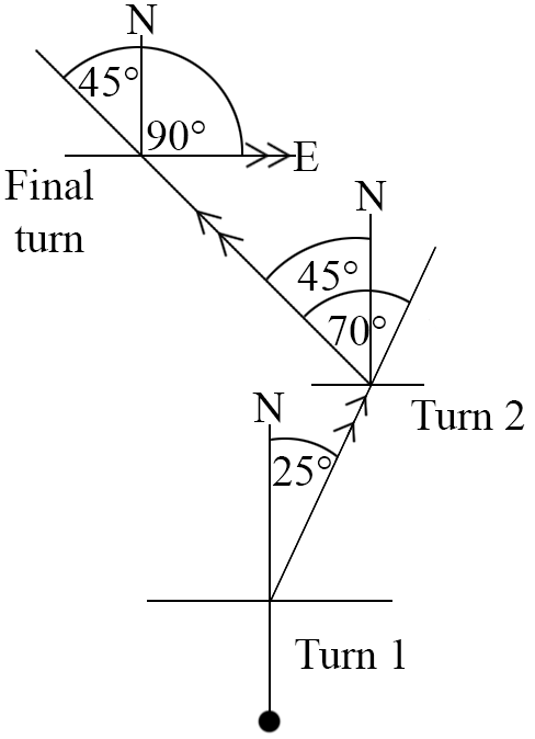 Blair was walking in bush trails. He started walking due north and then made three direction changes: