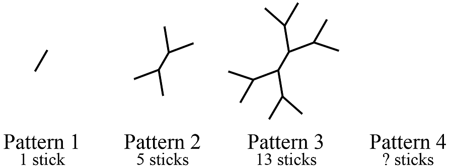 `:.\ text(Pattern 4 sticks)` `=13 + (8 xx 2)`