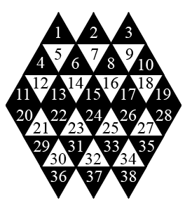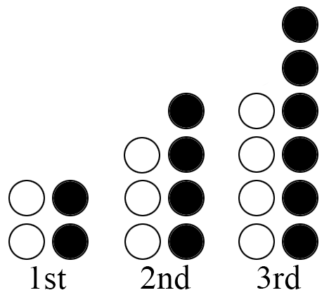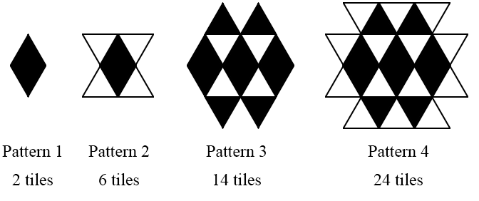 Adam is making a pattern with black and white triangular tiles as shown below.