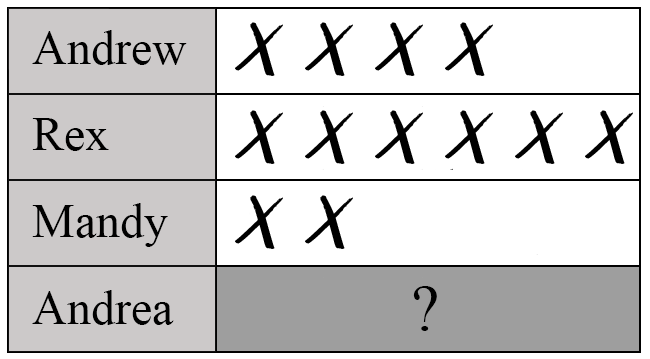 The goals scored by 4 players in a season of water polo were recorded in the graph below.