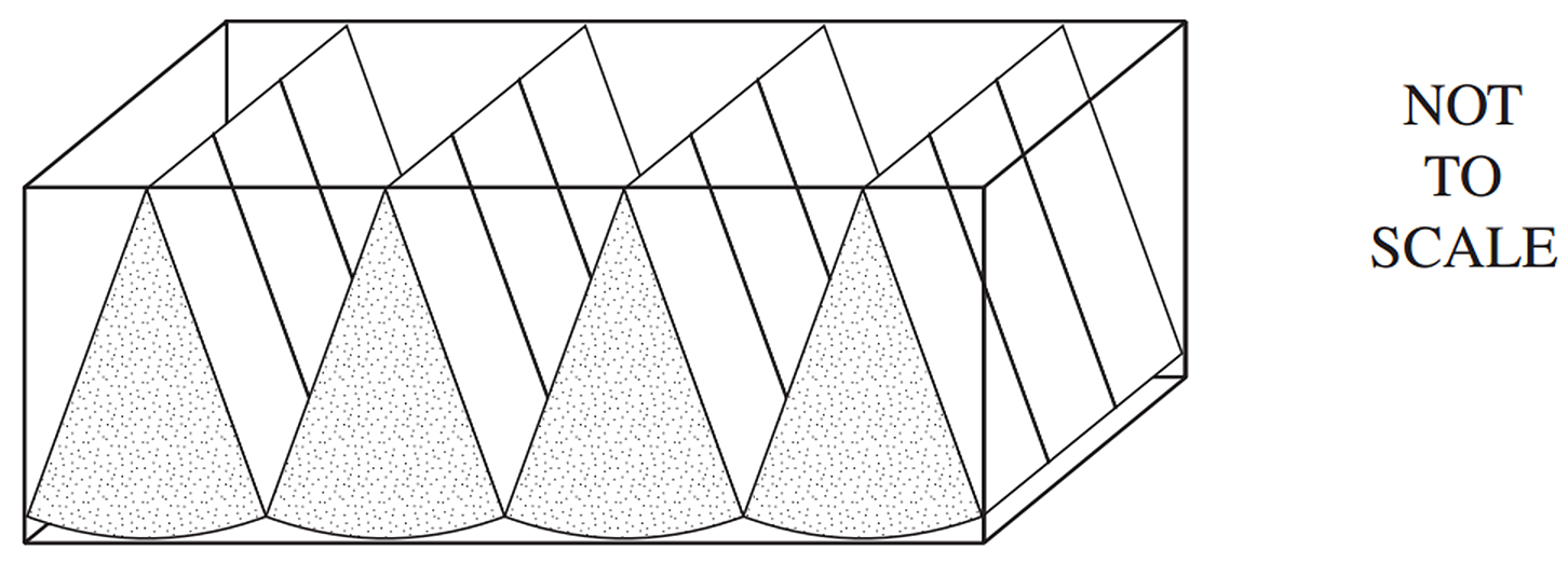 Solid spheres are placed inside a square-based pyramid as shown.