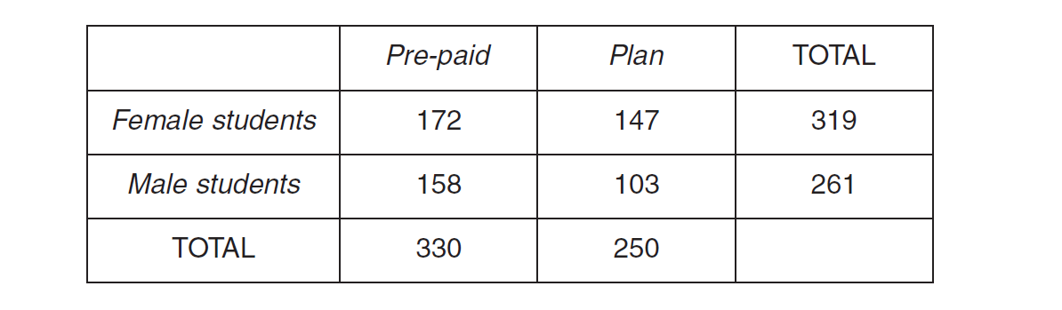 ii. `Ptext{(Female uses prepaid)}=text(# Females on prepaid)/text(Total females)`